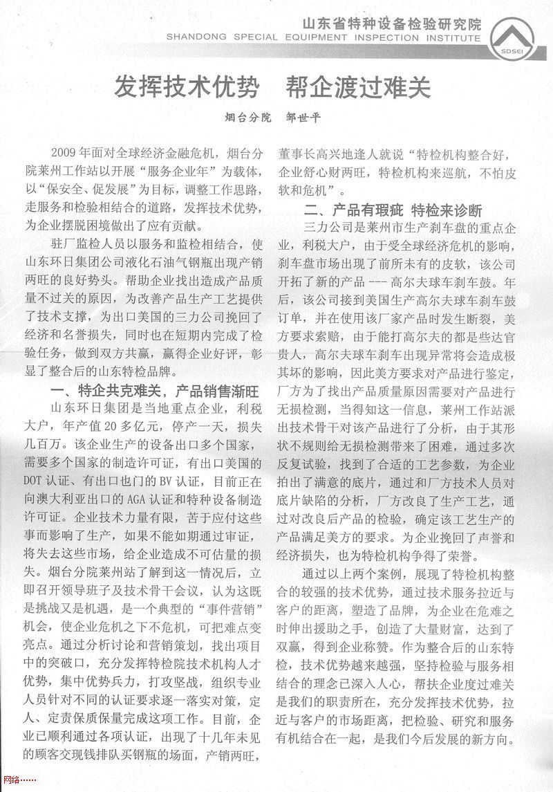 近日,烟台啤酒青岛朝日有限公司副总经理一行3人,来到烟台市特检院牟平工作站,将写有“严格规范检测,热情周到服务”的锦旗送到站长手中,以感谢该站工作人员对其公司工作的帮助和支持。